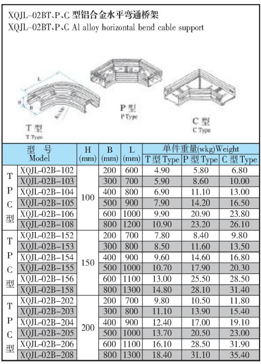 XQJL-02BT、P、C型鋁合金水平彎通橋架